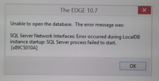 User is prompted with one of two error messages when opening The EDGE after restarting the computer.