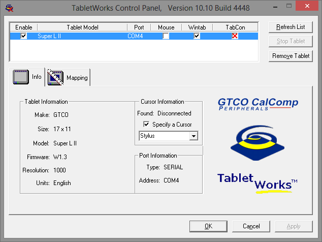 The image below displays the proper configuration of the TabletWorks Control Panel. (The EDGE should be closed when configuring TabletWorks)