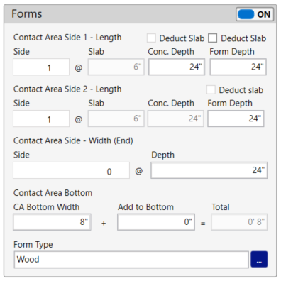 For an 8” wide x 24” beam, the form properties would typically look something like this:
