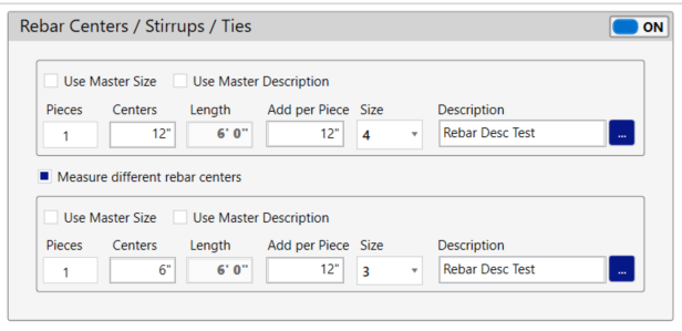 - “Rebar” tab – Rebar Centers – Vertical – Measure rebar count. Allows you to count the rebar location instead of using centers.