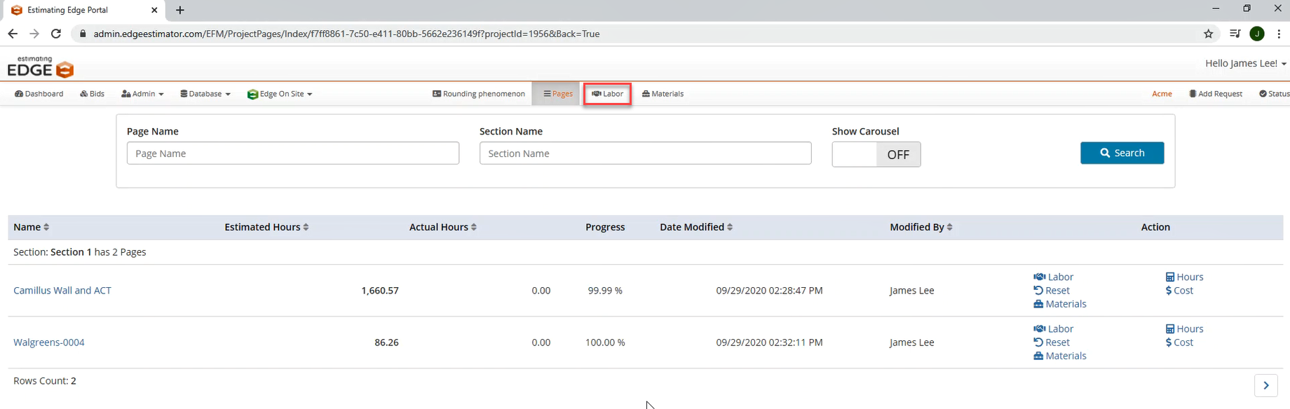 - Click on Labor.