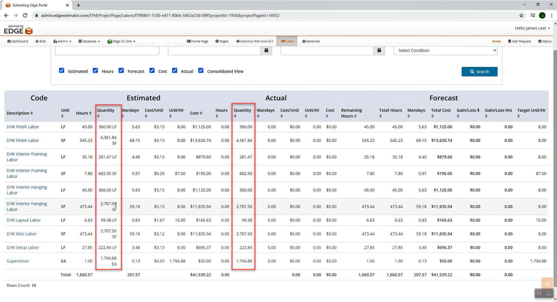 - Look through the Actual Quantity and the Estimated Quantity and see if there are any that do not match.
